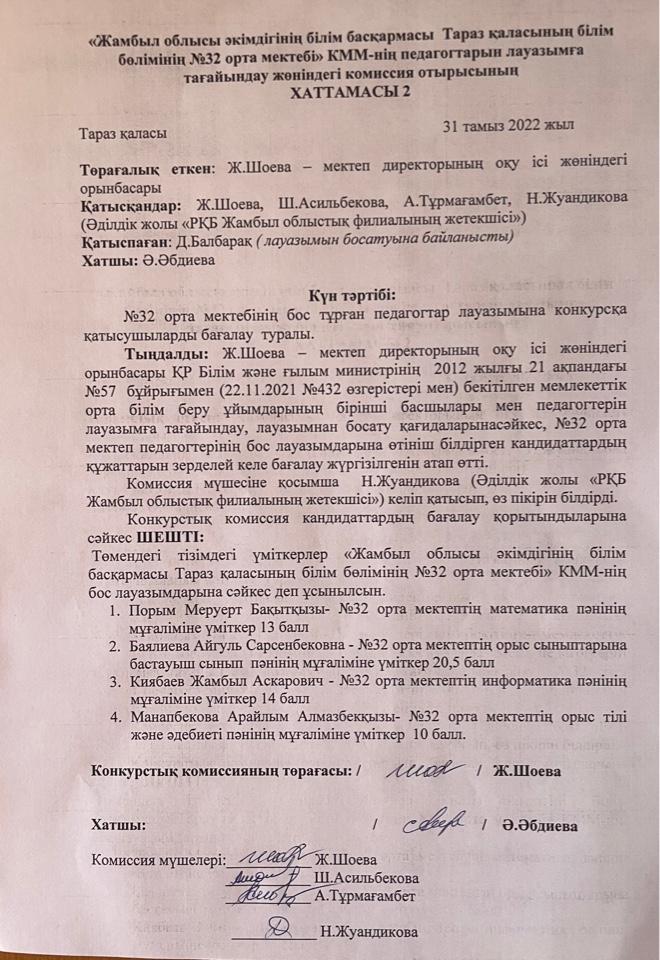 2 конкурс бойынша хаттама » СШ №32