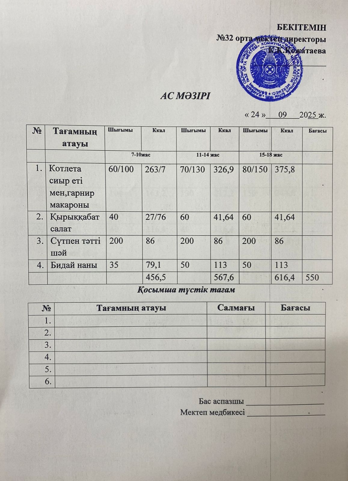 01 октябрь 2025 Ас мәзірі